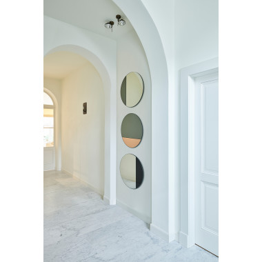 Le miroir Globo séduit par sa forme ronde généreuse et son design contemporain. Inspiré de la sphère, il apporte douceur, équilibre et luminosité à l’espace, tout en devenant un élément décoratif fort et élégant.