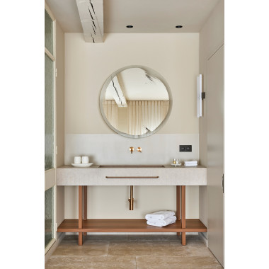 Le miroir Arbo s’inspire des formes naturelles et organiques. Son design doux et structuré évoque l’équilibre et la sérénité, apportant une touche chaleureuse et contemporaine à l’espace tout en renforçant la sensation de profondeur.