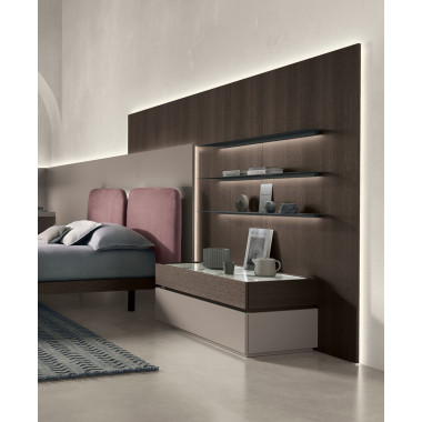 Le lit Morfeo évoque une atmosphère propice au repos grâce à son design contemporain équilibré. Élégant et structurant, il apporte à la chambre une sensation de sérénité et de confort, idéale pour un espace nuit raffiné.