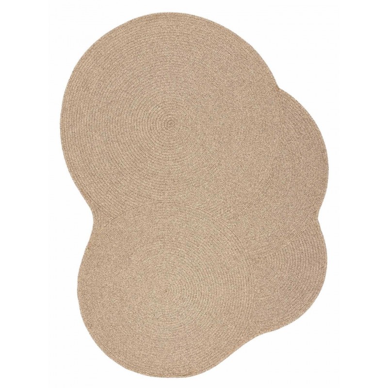 Une nouvelle facture pour ce tapis en polypropylène tout en rondeur et en enroulement. Le tapis est confectionné à partir de longues tresses cousues en enroulement continu pour former les ronds, puis ceux-ci sont assemblés et reliés par un remplissage de la même tresse. L’effet est magnifique et séduira tant en gris qu’en sable, pour un effet matière végétale bluffant de réalisme. Particulièrement résistant, il peut devenir tapis de cuisine comme de terrasse, et sa forme le rend particulièrement adapté aux coins salons.