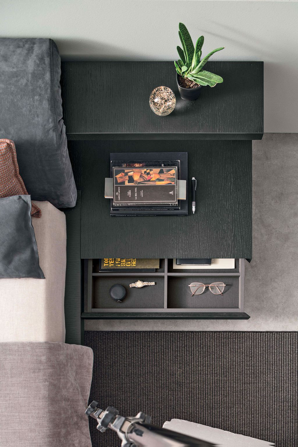 Morfeo adopte une esthétique contemporaine aux lignes maîtrisées, conçues pour instaurer une ambiance calme et reposante. Son design met en valeur les volumes avec sobriété, créant une présence élégante et rassurante dans la chambre. Il devient naturellement un point central discret, favorisant une atmosphère harmonieuse.