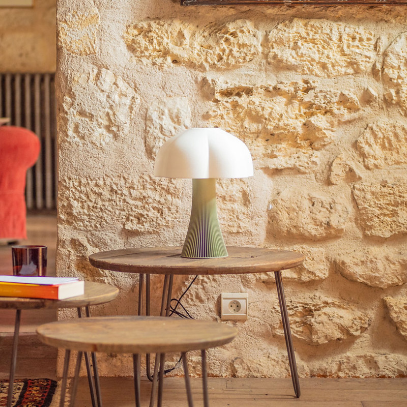 Pensée par la marque Filament, cette lampe conjugue modernité et respect de l’environnement : sa structure en bioplastique et bois recyclé respecte les principes d’éco-conception, tout en offrant une silhouette raffinée. Son design minimaliste et ses lignes douces s’adaptent à la fois aux intérieurs contemporains et aux décors plus naturels, apportant une touche de lumière esthétique et responsable.