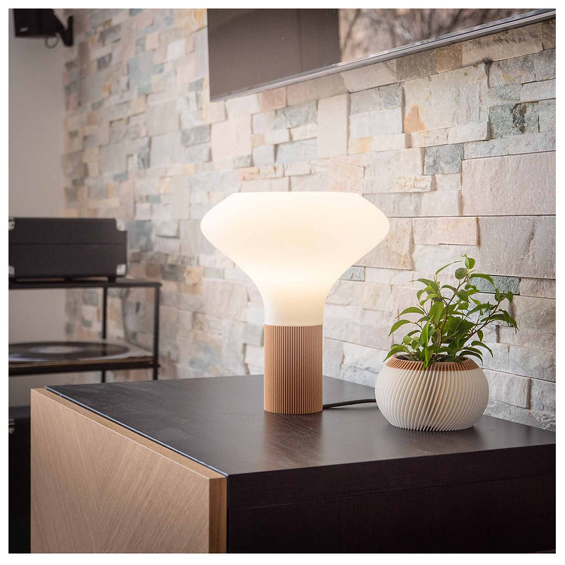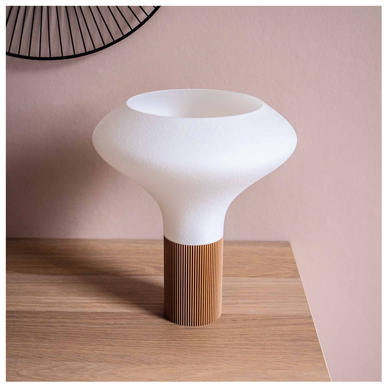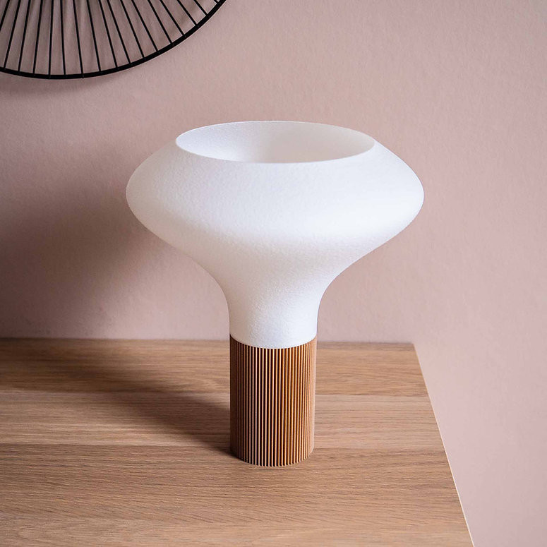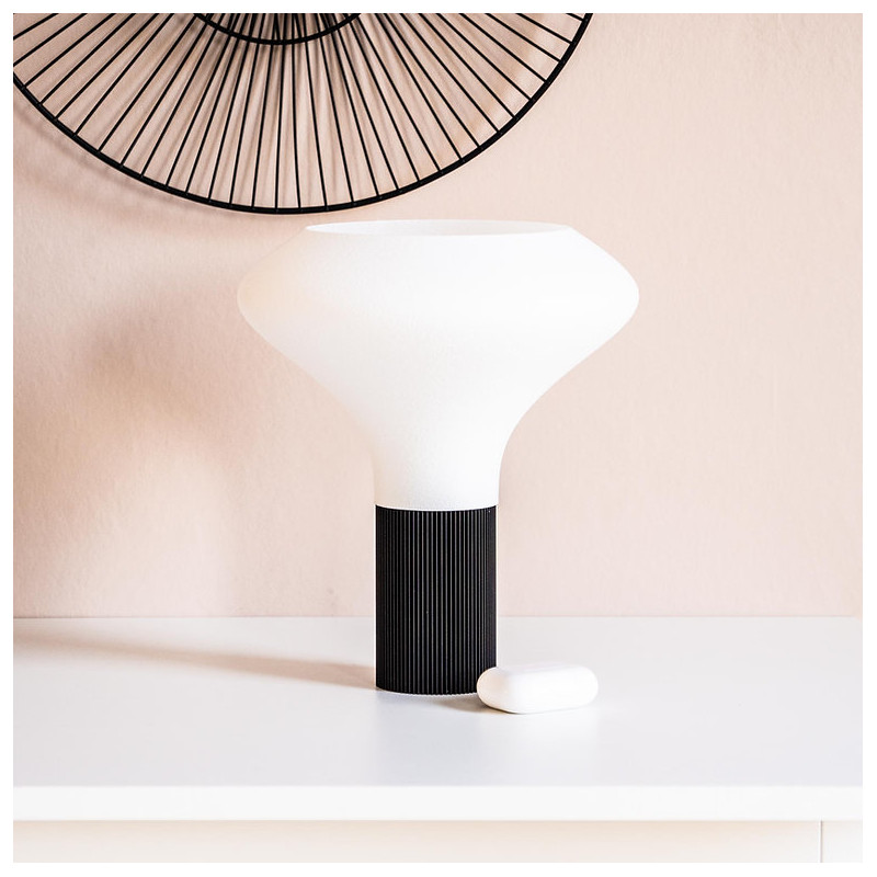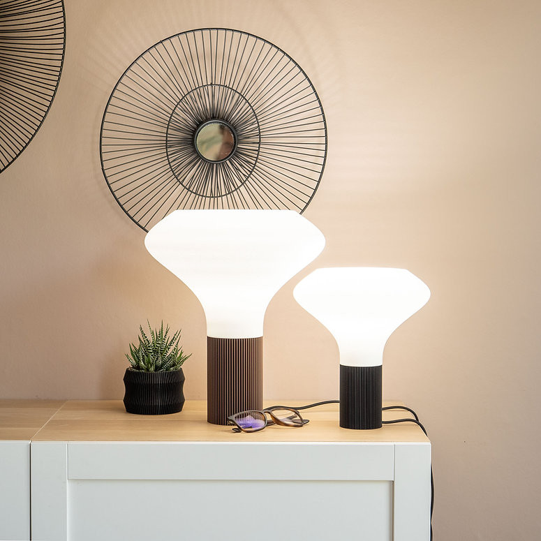 Élégance est une lampe écoresponsable imaginée par Filament, réalisée en bioplastique biosourcé à partir d’amidon de maïs. Sa forme délicate et élancée lui confère une allure haut de gamme tout en restant légère et harmonieuse. Avec ses courbes subtiles et son rendu visuel sculptural, elle sublime aussi bien un salon moderne qu’un espace plus intimiste, en apportant une pointe de sophistication discrète.