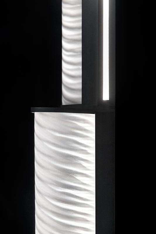 Modula Floor s’appuie sur une composition verticale rythmée par des volumes superposés, offrant une lecture graphique forte et équilibrée. Cette structure modulée évoque une architecture lumineuse, à la fois expressive et maîtrisée. Pensé comme un élément décoratif à part entière, le lampadaire structure l’espace sans l’alourdir et devient un point d’ancrage visuel dans un salon, un coin lecture ou un espace professionnel.