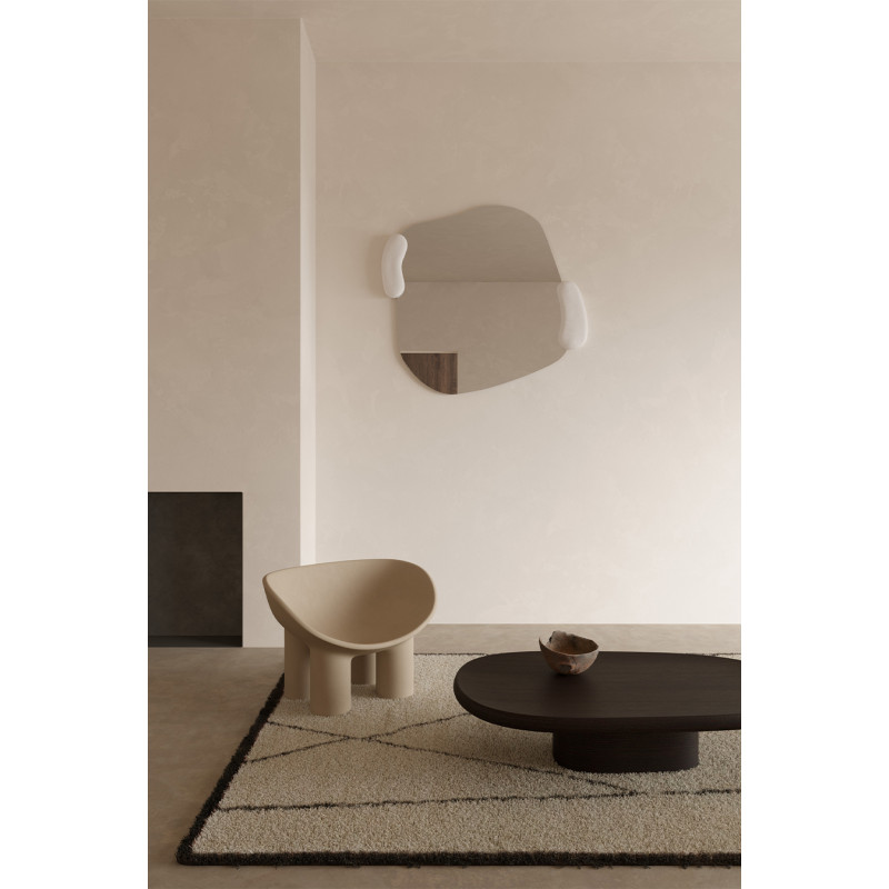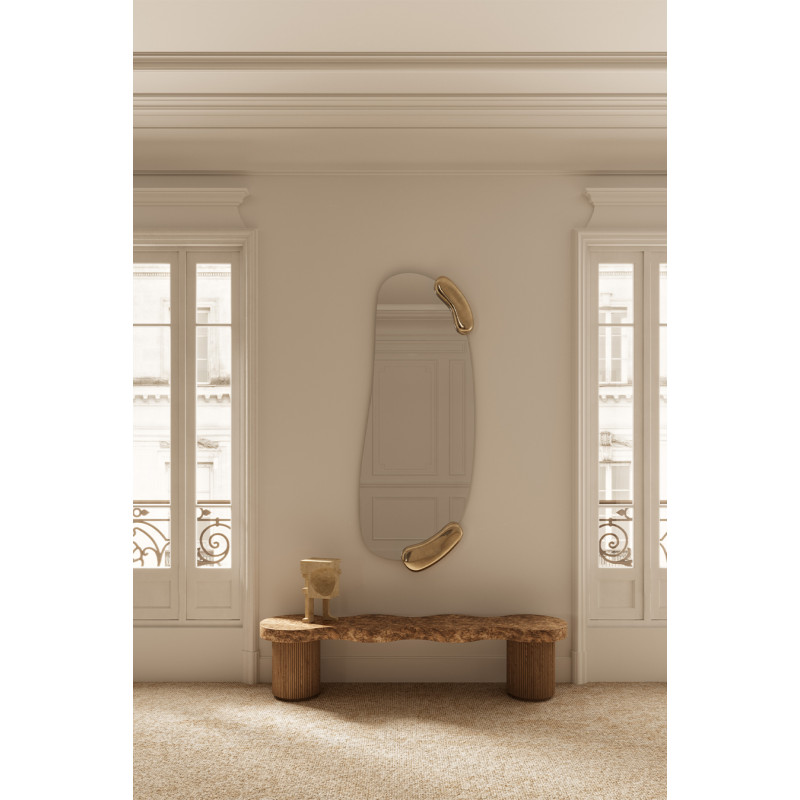 Calco s’inspire de l’univers de la matière et des reliefs naturels. Son design évoque une surface travaillée, presque sculptée, qui confère au miroir une forte présence décorative. Cette approche texturée apporte une dimension artistique et authentique, idéale pour enrichir un intérieur contemporain ou architectural sans excès.