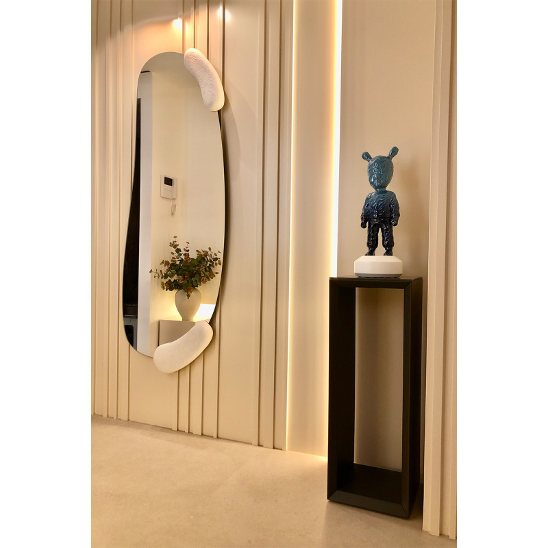 À la fois fonctionnel et décoratif, Calco trouve naturellement sa place dans une entrée, un salon ou une chambre. Il capte la lumière tout en structurant le mur sur lequel il est installé, créant un jeu subtil entre reflets et matière. Son esthétique brute et raffinée en fait une pièce durable, pensée pour traverser les tendances avec élégance.
