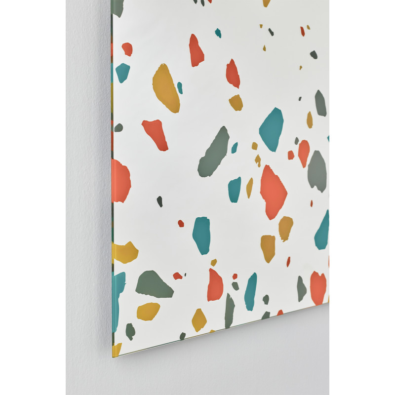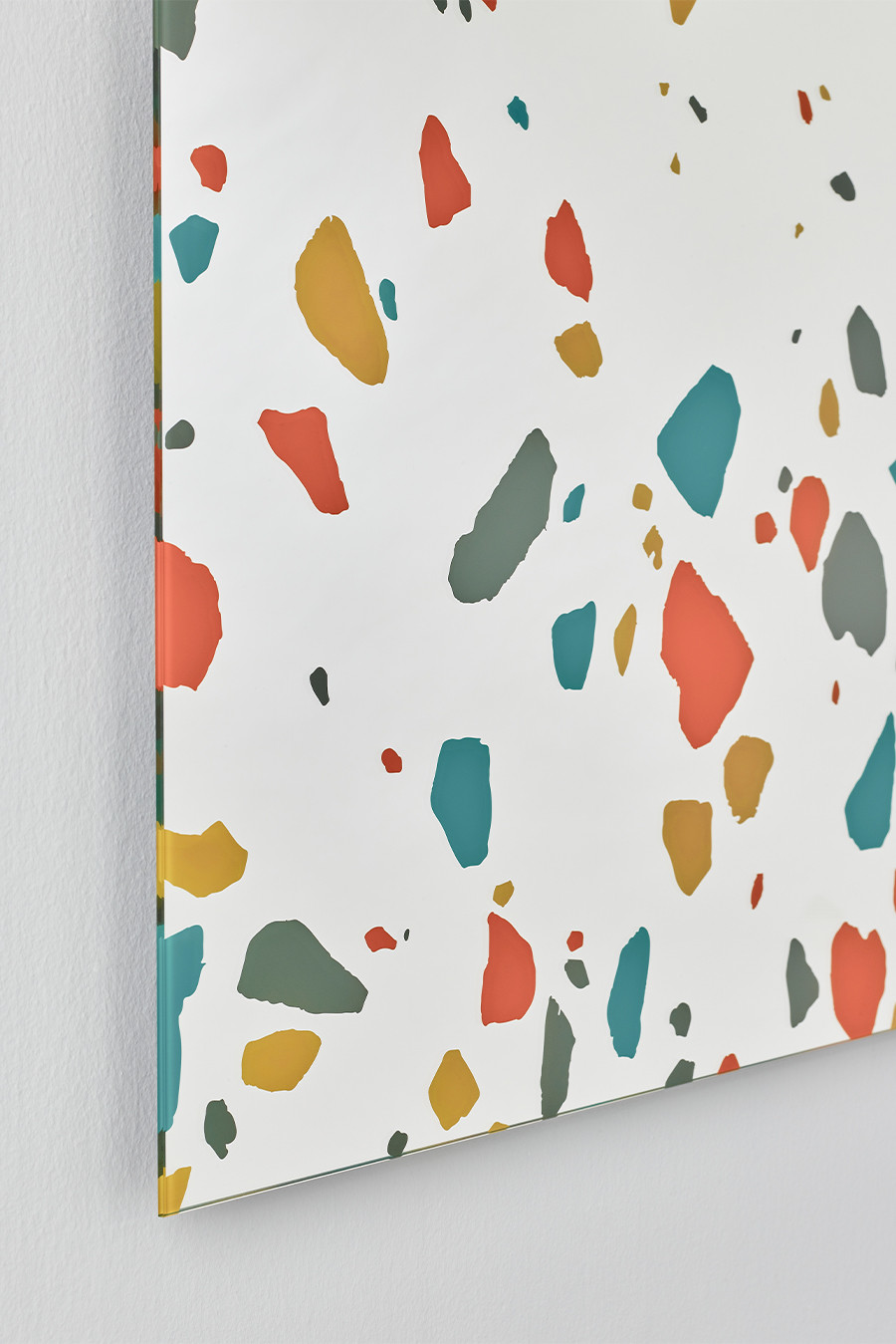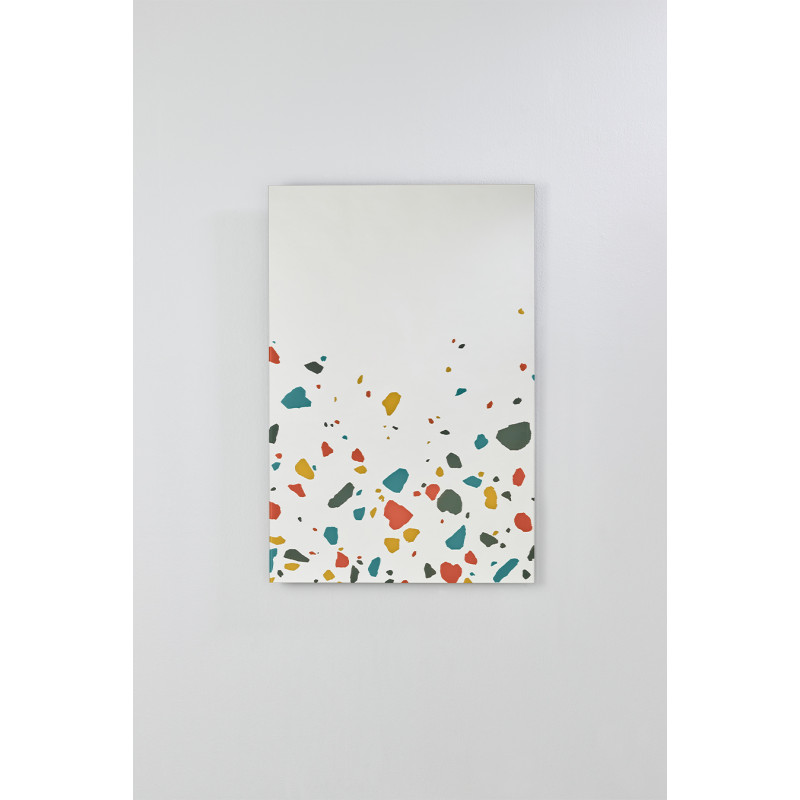 Terrazzo évoque l’univers des matières architecturales, où fragments et textures composent un ensemble visuel riche et équilibré. Son design s’inspire de l’esprit terrazzo, apportant une dimension graphique subtile qui structure le mur sans l’alourdir. Cette esthétique contemporaine en fait une pièce décorative expressive, idéale pour dynamiser un intérieur moderne ou créatif.