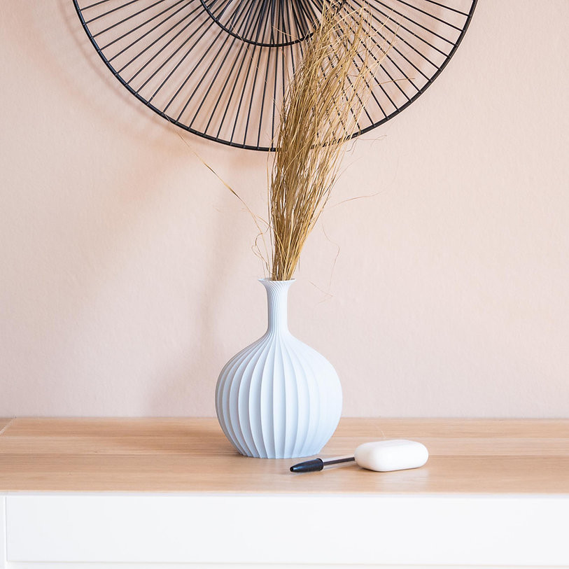 Azur se distingue par sa silhouette harmonieuse et son esthétique contemporaine. Pensé pour apporter finesse et modernité à un espace de vie, il peut être fabriqué dans une variété de couleurs sur demande, permettant une personnalisation parfaite pour s’accorder à votre intérieur. Conçu en bois recyclé et/ou en bioplastique 100 % biodégradable, ce vase incarne l’engagement écologique de Filament tout en offrant une présence décorative élégante et intemporelle.