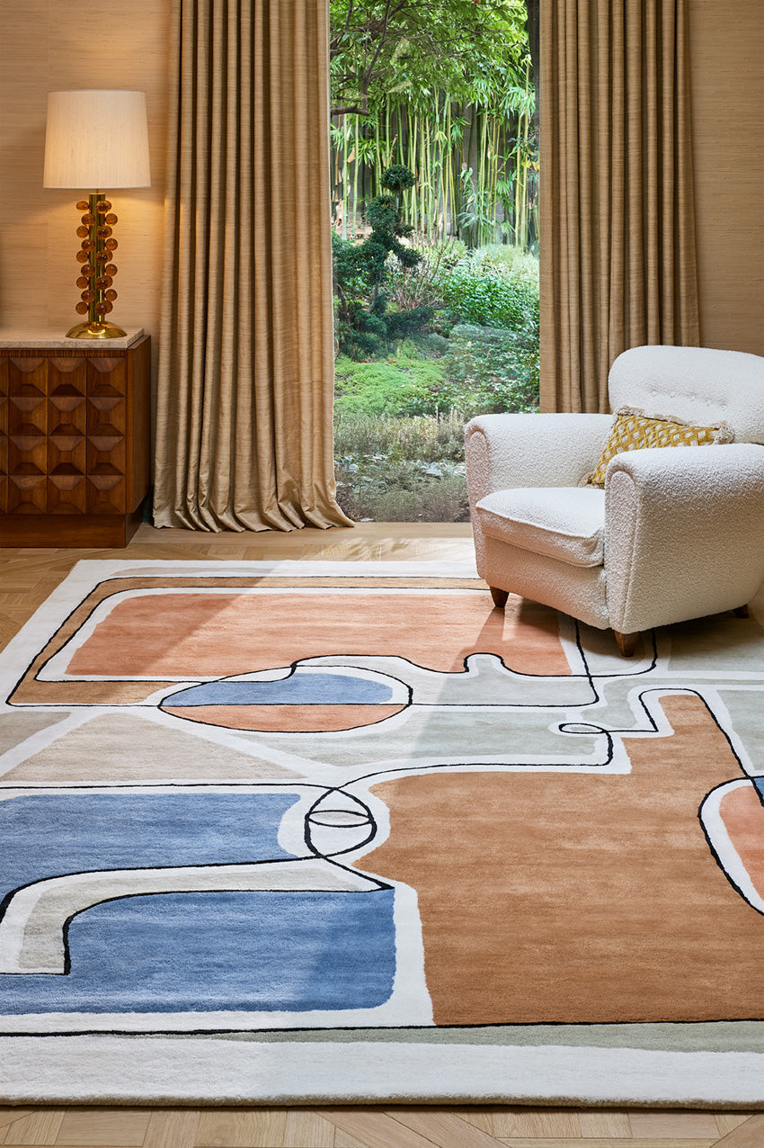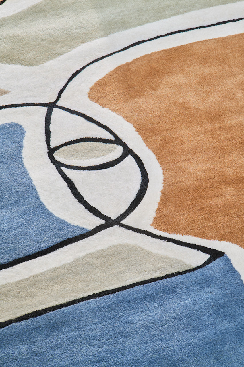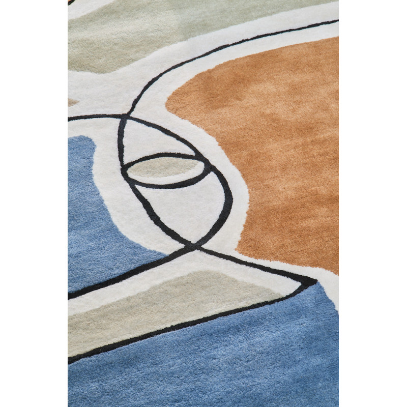 Bleu des Yeux s’inspire des compositions abstraites et des jeux de formes organiques. Ses lignes affirmées et ses aplats soigneusement orchestrés créent un rythme visuel captivant qui dynamise la pièce. Ce tapis évoque une véritable œuvre contemporaine, idéale pour donner du caractère à un salon, une entrée ou un bureau sans surcharger la décoration.