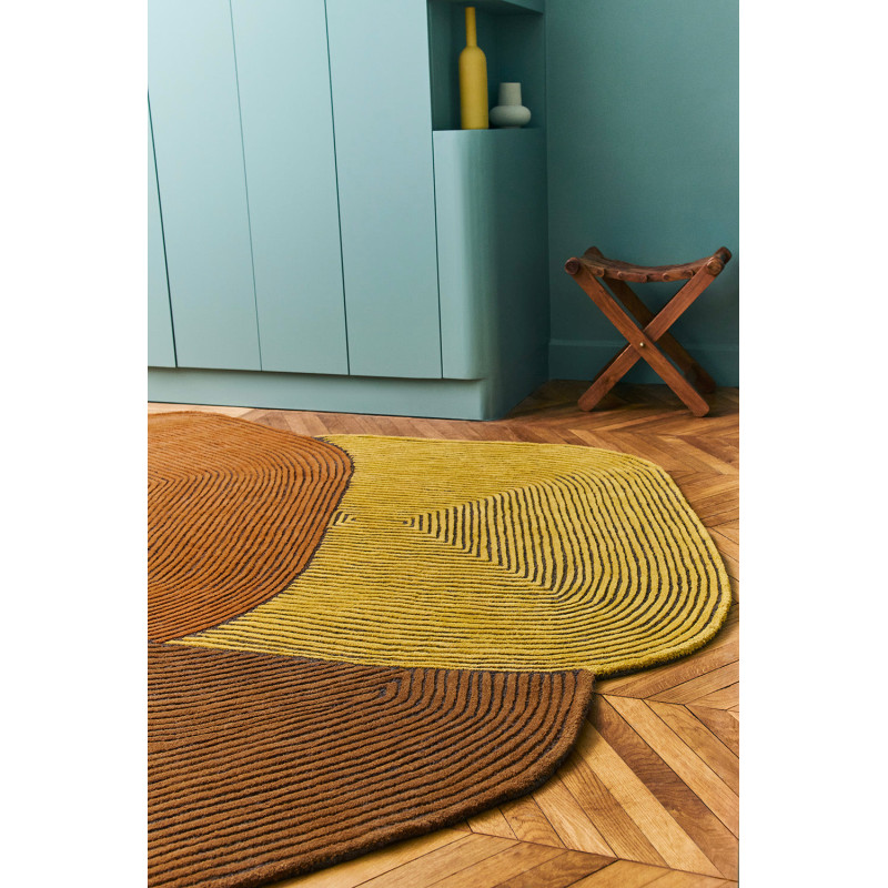 Tumulus évoque des paysages ondoyants ou des strates naturelles, revisités dans un langage graphique moderne. Son motif composé de courbes imbriquées crée une impression de profondeur et de mouvement maîtrisé, apportant un caractère artistique subtilement affirmé. Grâce à sa présence élégante, il trouve sa place aussi bien dans un salon que dans une chambre ou un espace professionnel.