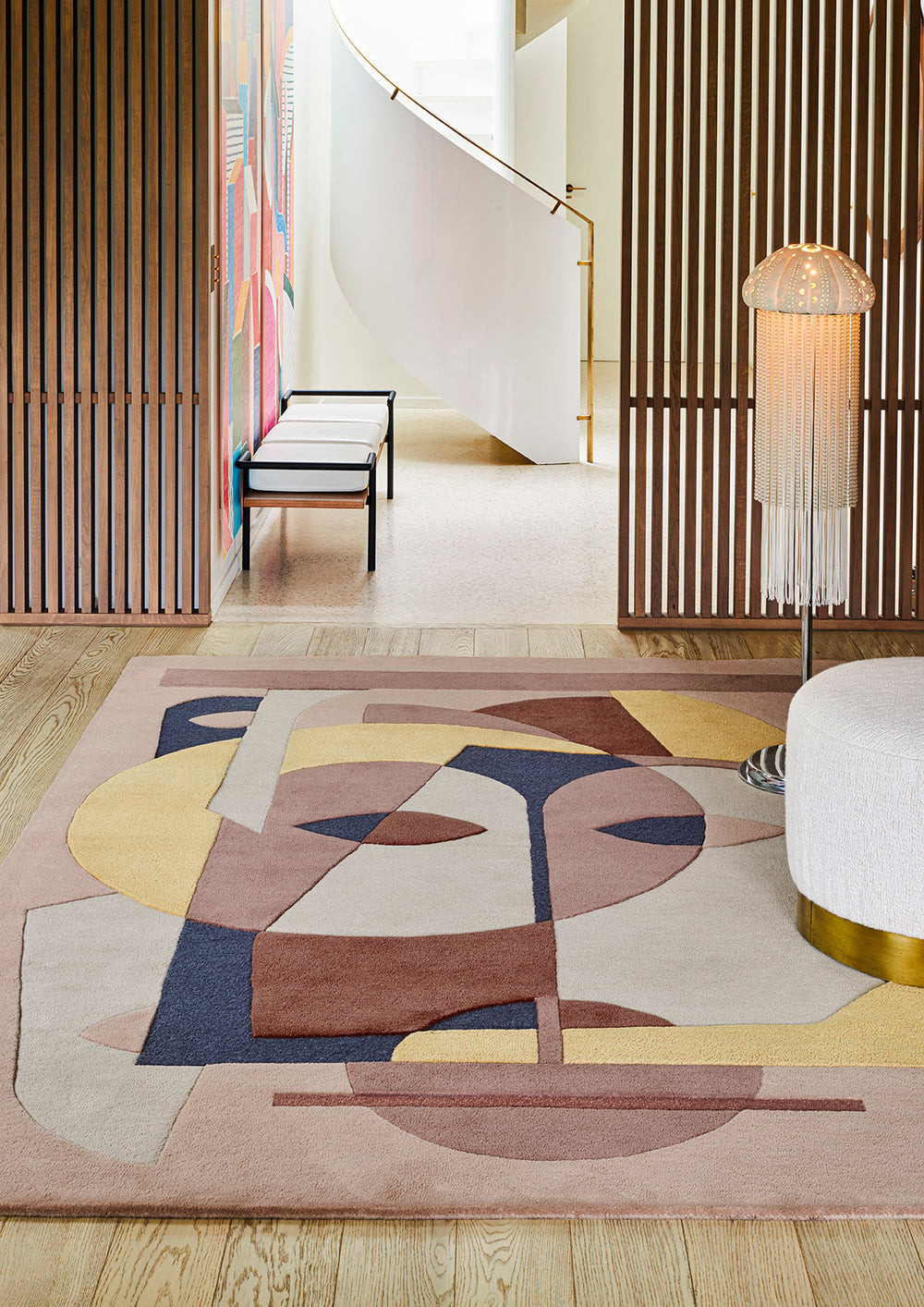 Aduma se distingue par un graphisme audacieux composé de lignes, formes et répétitions qui créent un rythme visuel captivant. Son motif architectural évoque un langage décoratif moderne, idéal pour dynamiser un salon, une entrée ou un espace de travail. L’ensemble apporte une présence affirmée sans jamais surcharger l’atmosphère.